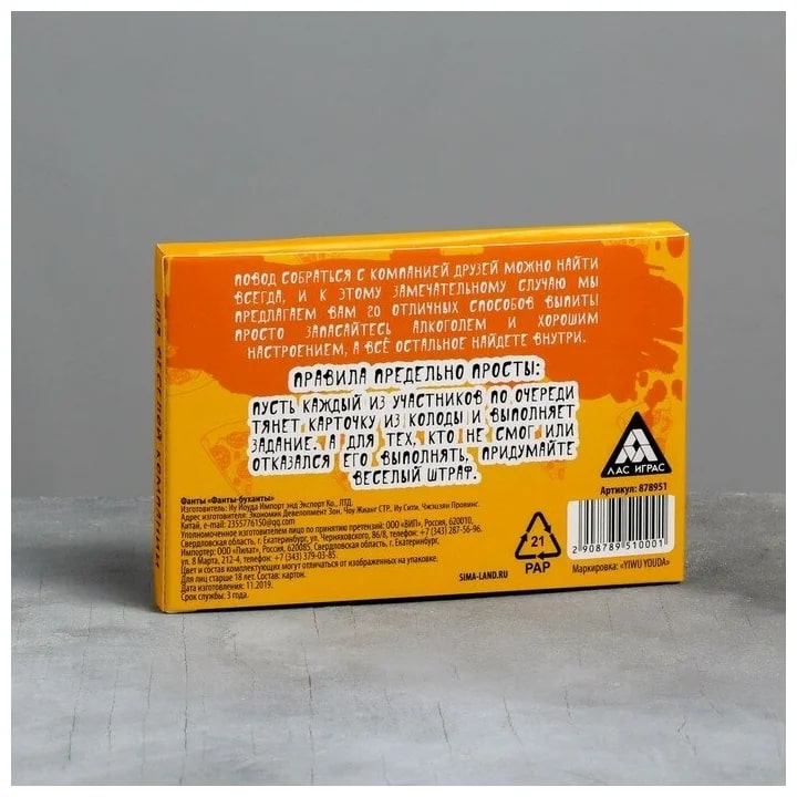 Купить игра для компании "фанты буханты" 20 карт от 100 руб. с доставкой до пункта выдачи в Приморске. Интернет магазин ДекаМаркет. Оплата при получении.